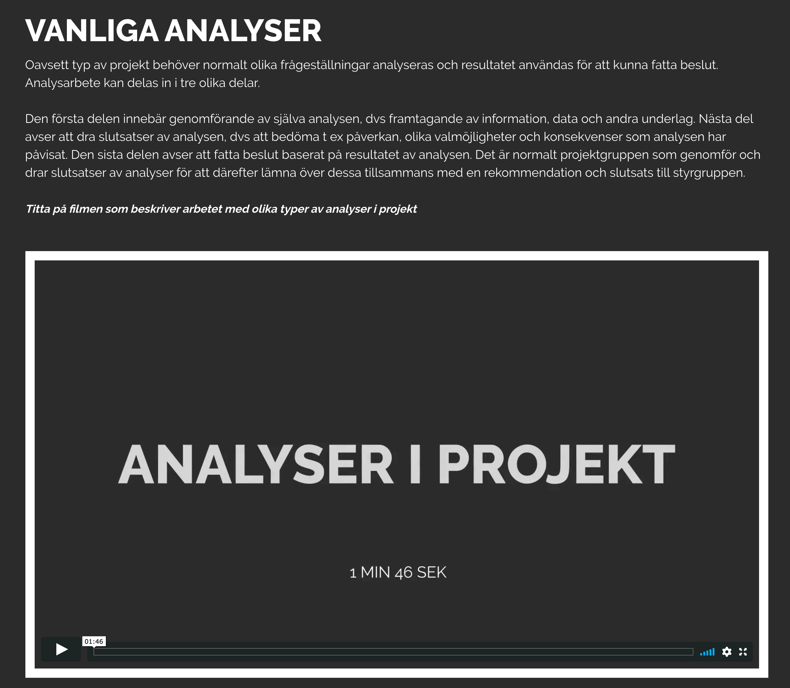 • Analysera projekt utifrån olika aspekter